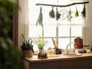 Fresh herbs aren’t just for garnishing - they can bring colour, texture and scent into your space. Display them like you would a bouquet: a jar of parsley in the window, a bundle of basil in a mug, or some woody rosemary in a glass jar. Keep them in water to extend their life and make plucking a sprig for dinner that much easier. Dill, Thyme, Sage and Bay Leaves all hold up beautifully and scent the space as they sit too.